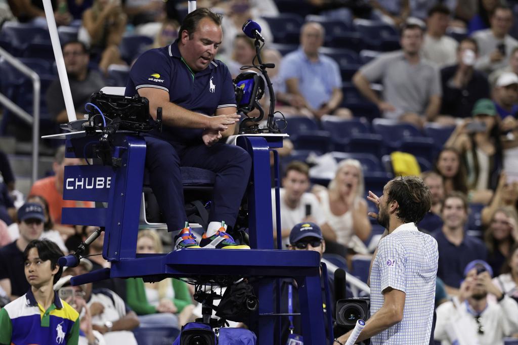 梅德维德夫向裁判表达不满。